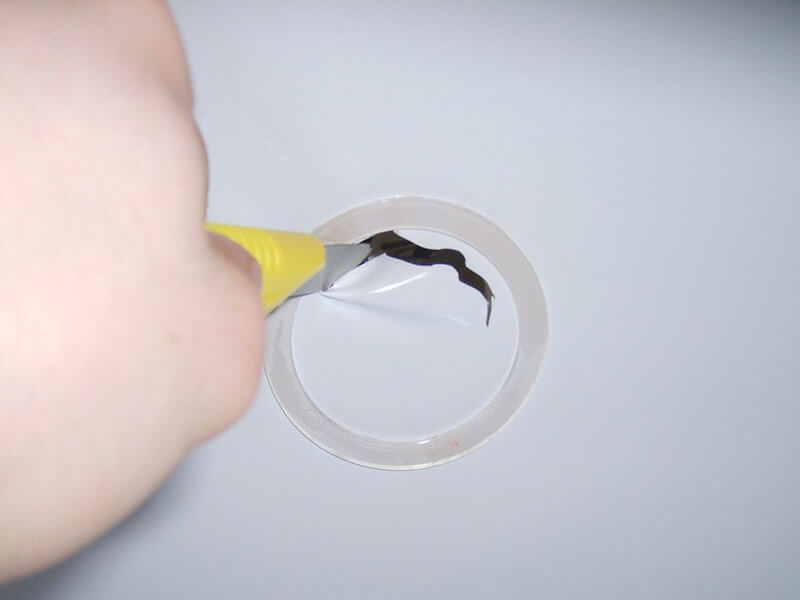 Na stejné místo připevněte dezénový kroužek speciálním lepidlem. Nedovolí, aby se strop zlomil nebo zdeformoval.