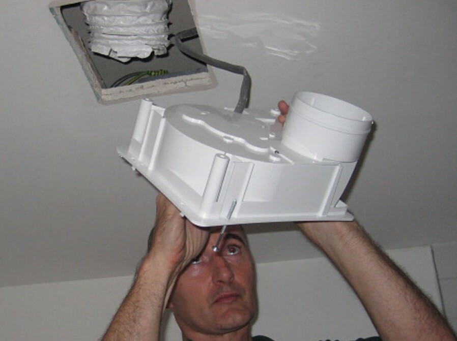 - na místo instalace ventilátoru z ventilačního potrubí nad stropem položte vlnitý nebo plastový kanál;