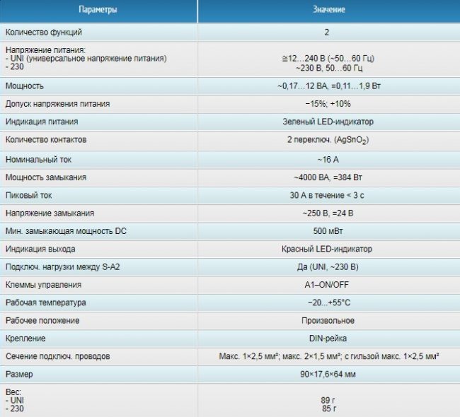 - NennwerteI - Spannung, Strom und andere Werte, die dem Betrieb des Relais zugrunde liegen.