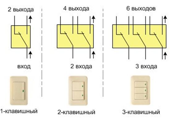 Das Ignorieren der Markierungen und Schaltkreise auf den Schaltern führt zu Verbindungsfehlern und zum fehlerhaften Betrieb des Schaltkreises. Das häufigste Problem, das insbesondere bei der Installation von Durchgangsschaltern auftritt, besteht darin, dass der Benutzer den Standort des eingehenden Kontakts falsch ermittelt.