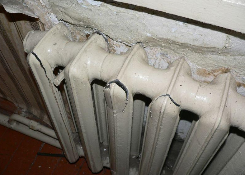 Gusseisenbatterien „fließen“ im Laufe der Zeit, hauptsächlich an der Verbindungsstelle von Abschnitten. Meistens geschieht dies zu Beginn der Heizperiode. Während des Starts des Kesselraums tritt ein Wasserschlag auf. Wenn die Heizkörper standhalten, ist in einer bestimmten Jahreszeit die Wahrscheinlichkeit eines Auslaufens minimal. Im Allgemeinen hängt es vom allgemeinen Zustand ab.In den meisten Fällen können sie wiederhergestellt werden, müssen jedoch entfernt werden.