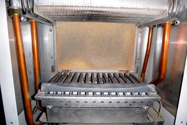 Der Wärmetauscher besteht aus 2 mm hochwertigem Stahl, der die Anforderungen von GOST erfüllt, und ist oben mit korrosionsbeständigem Email beschichtet, um das Metall vor Mineralölen und Salzlösungen zu schützen. Das Gasventil und der Mikroflammbrenner sind original italienische Teile.