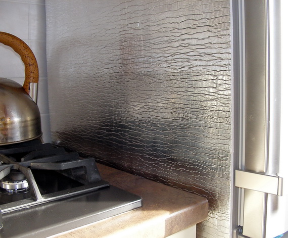 Mit Hilfe von Schildern wird der Kühlschrank vom Gasherd eingezäunt. Es ist möglich, eine Wärmedämmung aus verschiedenen Materialien, beispielsweise Spanplatten, herzustellen. Platten haben eine hohe Steifigkeit, so dass sie nicht auf die Oberfläche der Geräte geklebt werden können.