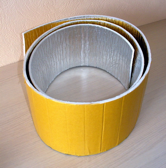 Einerseits hat die Rollendämmung eine selbstklebende Oberfläche und andererseits ist sie mit einem Lavsanfilm bedeckt. Das Material sollte von oben nach unten auf die gesamte Oberfläche der Wand des Kühlschranks geklebt werden.
