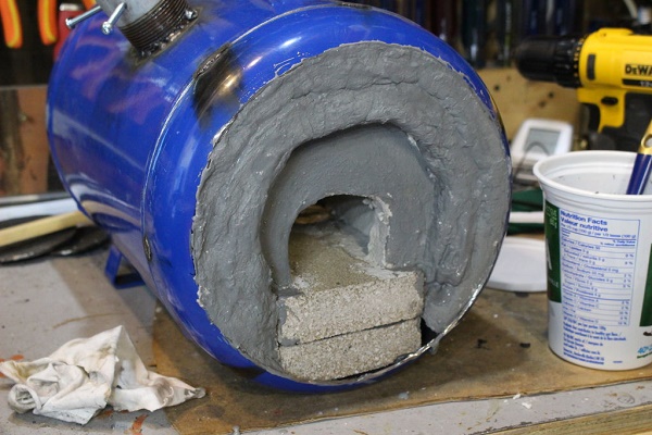 Die Auskleidung eines hausgemachten Herdes besteht aus einer Mischung aus Schamott und gemauertem Schamott. Hierfür können Sie eine fertige Mischung kaufen. Nach dem Auftragen muss nichts speziell gebacken werden. Während des Gebrauchs der Vorrichtung tritt eine Aushärtung der Auskleidungszusammensetzung auf.