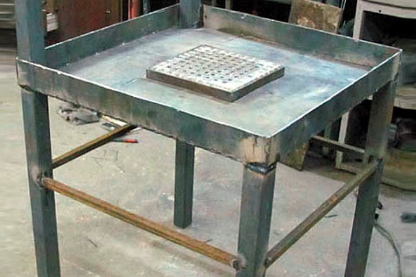 Um Rauchgase vollständig zu sammeln und zu entfernen, wird ein Zelt oder ein Regenschirm über dem Tisch mit einer Lochplatte oder über der Lanze platziert. Sie sind mit dem Rauchkanal verbunden, der nach dem Prinzip von aufgebaut ist Schornstein für Gaskessel. Es sollte einwandfrei funktionieren Die beim Erhitzen des Metalls freigesetzten Gase sind äußerst giftig.