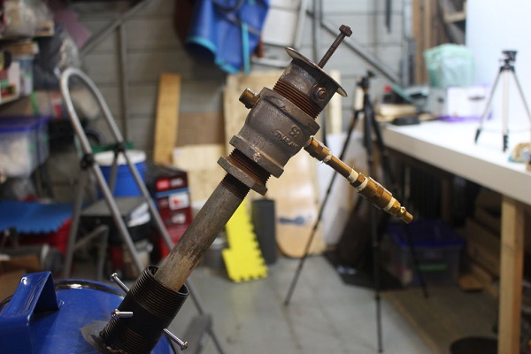 Für das Gerät dieses Modells benötigen Sie einen gebrauchten Schwanenhals. An seinen Enden werden Löcher durchgeschnitten, um in einen hausgemachten oder gekauften Gasbrenner zu gelangen. Über den Löchern sind zwei Löcher ausgeschnitten. Dieses Modell sowie der bisherige Typ können ausschließlich an der Frischluft betrieben werden.