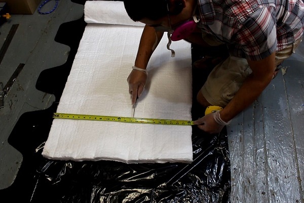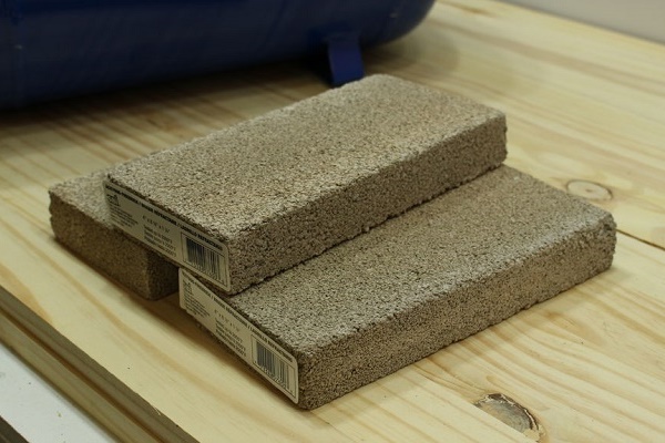 Jetzt ist es an der Zeit, den Boden eines hausgemachten Herdes anzuordnen. Dazu benötigen wir Schamottesteine, aus denen wir eine Art Desktop erstellen. Gleichzeitig trennen wir die Hochtemperaturzone vom Kontakt mit der Metallwand des Gehäuses.