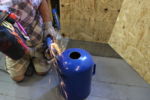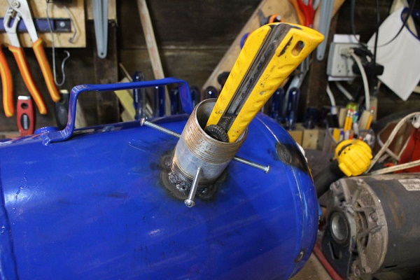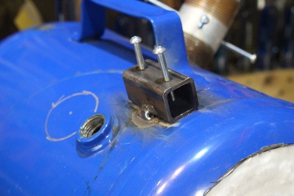 Wenn der Behälter anfangs keine Stützbeine und oben einen Griff zum Tragen hatte, sollten diese geschweißt werden.Übrigens, wenn keine Erfahrung im Schweißen vorhanden ist, können Arbeiten an Verbindungsteilen mit Schrauben oder durch Löten durchgeführt werden.