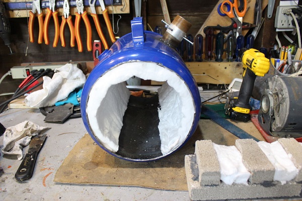 Um eine Explosion des Gasbrenners während des Betriebs zu verhindern, ist es besser, vor dem Betreten des Feuerraums eine Trennwand aus Asbestkarton anzubringen. Schließlich kann die Wärme, die von einem offenen Feuerraum kommt, zurückkehren und den Tank mit Gas heizen.