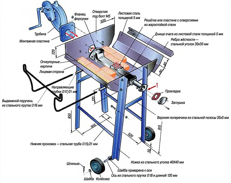 Wie man mit eigenen Händen eine Schmiedeschmiede auf Gas herstellt: Tipps + Zeichnungen, um Heimwerkern zu helfen