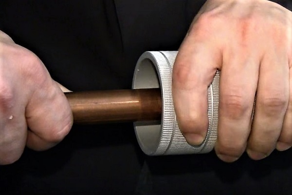Erfahrene Handwerker verwenden zum Heizen eine Taschenlampe, Acetylen-Sauerstoff oder Acetylen-Luft. Betriebstemperatur - ab + 650 ° C. Die Bereitschaft von Kupfer wird durch den Farbton bestimmt: Sobald es dunkelrot wird, können Sie sich biegen. Der Vorgang wird schnell, aber sorgfältig durchgeführt.