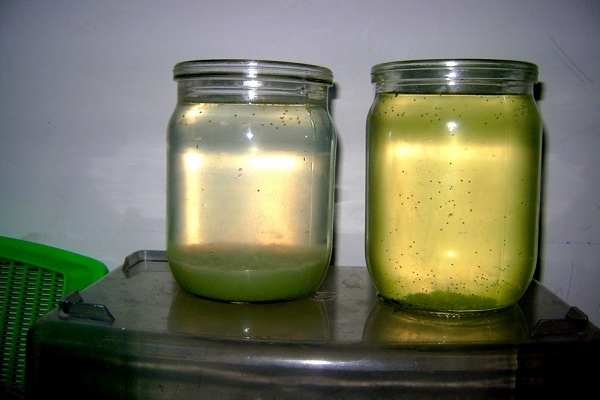 Dies ist ein zeitaufwändiger Vorgang. Wenn Sie die Dosierung unterbrechen, erhalten Sie möglicherweise nicht das erwartete Ergebnis. Und vieles mehr hängt von der Wahl des Gerinnungsmittels ab. Bevor ich mit der Reinigung begann, übergab ich das Wasser zur Analyse an das Labor, in dem sie mir sagten, welches Gerinnungsmittel ich verwenden sollte. Moderne Reagenzien haben sogar Spender, sodass Sie die Anweisungen nur sorgfältig lesen müssen, damit Sie sich nicht irren. Ich werde sagen, der Ärger ist es wert. Wir entsorgen das in der Klärgrube abgelagerte Abwasser einfach in der Rinne, es ist sehr transparent und geruchlos.