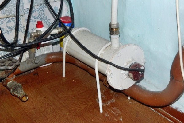 Danach wird der Ort ausgewählt, an dem der Kessel installiert wird.Das Rohr in diesem Abschnitt ist markiert, wonach ein Fragment herausgeschnitten wird, das der Länge der Heizvorrichtung entspricht.