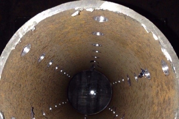 Die Löcher in den Wänden des Rohrs in einem Schachbrettmuster oder einfach gleichmäßig über die Oberfläche verteilt haben einen Durchmesser von 0,9 bis 0,95 cm. Die Vertiefungen von der Unterseite und der Oberseite des Rohrs betragen 2 bis 2,5 cm bzw. 5,5 bis 6 cm.