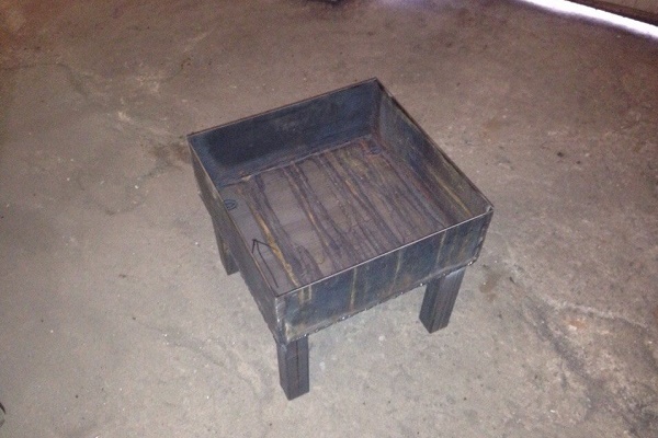 Es bleibt, die Beine von den Ecken an den Körper zu schweißen und den Ofen aufrecht zu stellen. Neben bürgerlich im vertikalen Design, horizontal angeordnete Öfen. Ihr Gerät ist ähnlich.