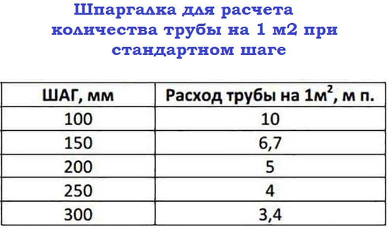 Der Abstand zwischen den Rohren wird als Stufe bezeichnet. Bei der Auswahl dieses Parameters müssen zwei Anforderungen erfüllt sein: Der Fuß des Fußes sollte den Temperaturunterschied in den einzelnen Zonen des Bodens nicht spüren, und die Rohre sollten so effizient wie möglich verwendet werden.