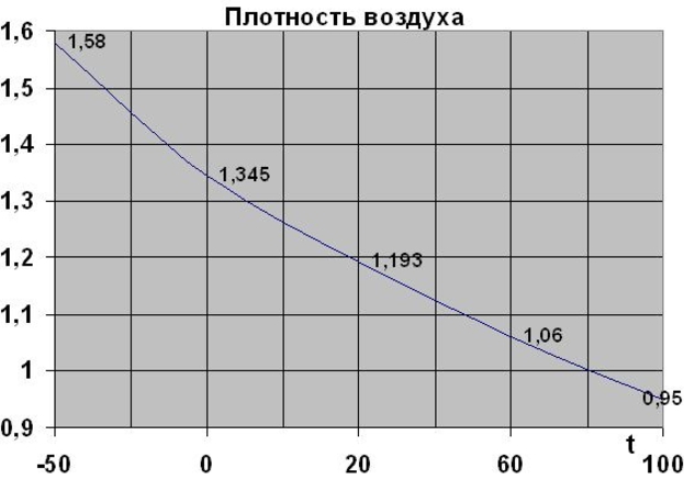 Der letzte Parameter wird erhalten, indem das Gesamtluftvolumen mit dem Volumen aller Räume multipliziert wird, vorausgesetzt, die Luft wird stündlich mit einer Dichte aktualisiert, die je nach Temperatur variiert.