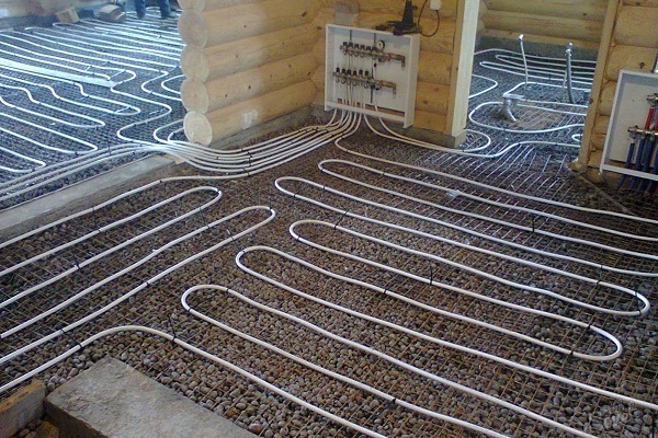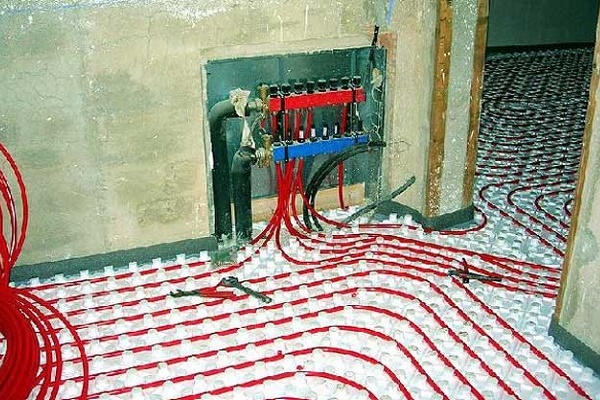 In den Verzeichnissen finden Sie Informationen, dass die Mindestdicke des Estrichs 30 mm beträgt. Wenn der Raum ziemlich hoch ist, wird eine Heizung unter den Estrich gestellt, was die Effizienz der Nutzung der vom Heizkreis abgegebenen Wärme erhöht.