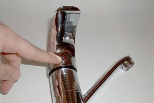 - Steuerhebel - ein Drehgriff, der die Stärke des Durchflusses und die Temperatur des Wassers einstellt. Es wird mit einer Schraube am Körper befestigt, die mit einer dekorativen Kappe verschlossen ist, auf der Farbe oder Buchstaben die Bezeichnung von kaltem und heißem Wasser angeben.