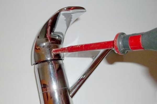 - Hebeln Sie den dekorativen Stopfen am Mischerkörper mit einem Schraubendreher oder einem normalen Messer ab und entfernen Sie ihn.