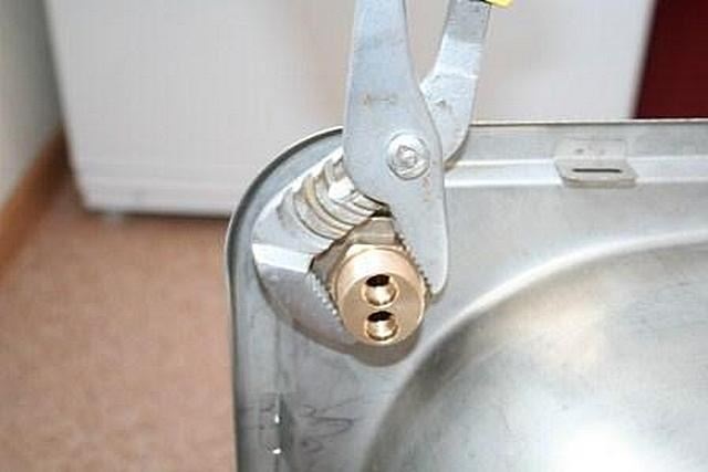 Nach einer Wartezeit von 10-15 Minuten können Sie versuchen, die Muttern der Verbindungen mit einem verstellbaren Schraubenschlüssel zu lösen. Zuerst müssen Sie die Muttern am Gewindestift leicht lösen.