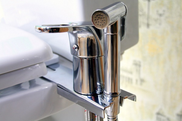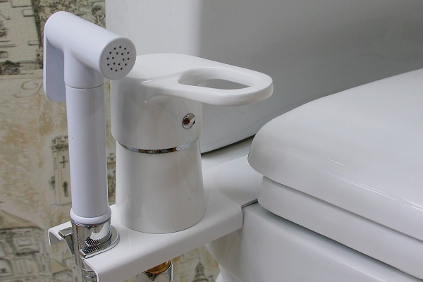 Eine andere Möglichkeit besteht darin, einen Mischer mit einer Gießkanne zu installieren. Dies ist ein spezielles Sanitärprodukt zum Waschen bestimmter Körperteile, wenn Sie eine Toilettenschüssel anstelle einer Bidetschale verwenden können. Und es ist in der Nähe der Toilette installiert, so dass es bequem ist, eine Gießkanne zu bekommen.