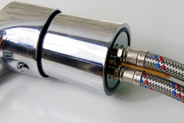 Wir gehen davon aus, dass die ersten Schritte erfolgreich bestanden wurden, der Mischer auf einer Metallstange montiert ist. Jetzt müssen Sie es verbinden: