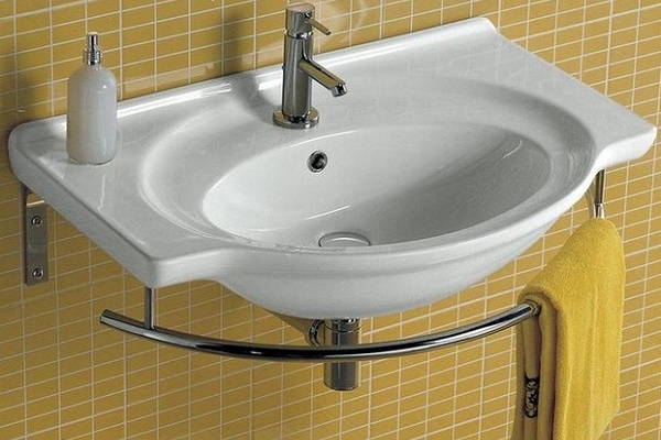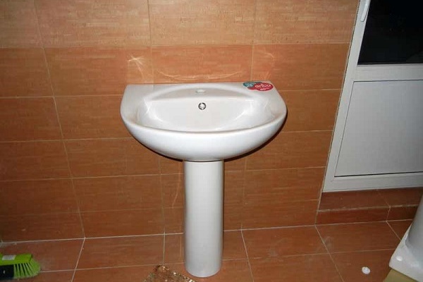 Ebenso ist eine Spüle ohne Klammern befestigt. Der Installationsprozess unterscheidet sich darin, dass er direkt an der Wand befestigt wird. Während des Markierungsprozesses werden daher die Montageorte markiert, die Löcher gebohrt und die Dübel verstopft. Anschließend wird das Waschbecken an der Wand angebracht und an dieser Stelle mit speziellen Befestigungselementen befestigt.