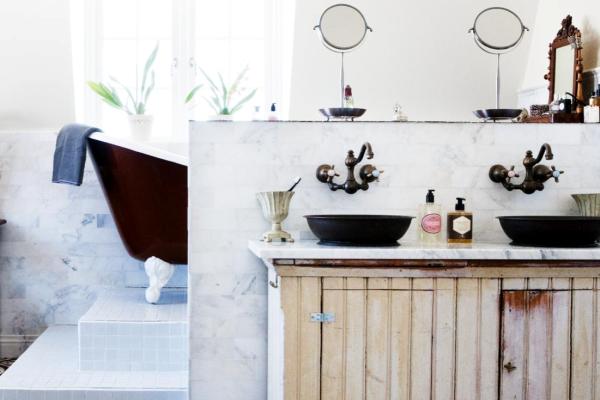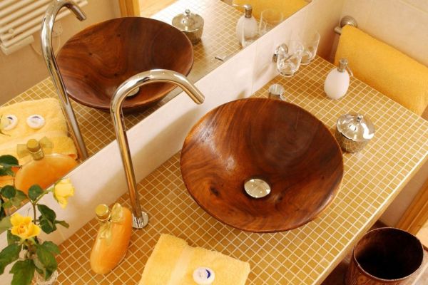 Natürlich sind Designerwaschbecken aus Holz und Stein nicht für das übliche städtische Interieur geeignet. Sie werden von wohlhabenden Menschen ausgewählt, die sich ein luxuriöses Interieur in einem angemessenen Stil leisten können.