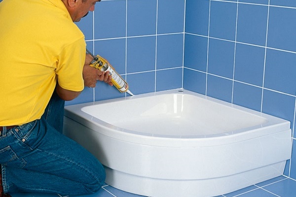 Angenommen, wir mussten keine Wassersteckdosen übertragen, der Installationsort des Systems wurde bereits mit Wasser versorgt und ein Mischer wurde installiert. Nachdem wir die Verbindung der Palette mit dem Abwassersystem über einen Siphon und einen Abschnitt des Abwasserrohrs abgeschlossen haben, fahren wir mit den Endbearbeitungsarbeiten fort: