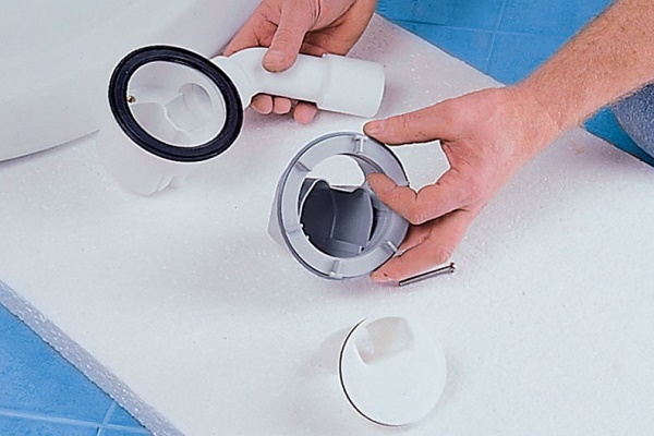 Schwierigkeiten können nur ohne eine Pfanne auftreten, wenn das Abflussloch und der Abfluss von ihm in den Abwasserkanal im Boden zugemauert sind.