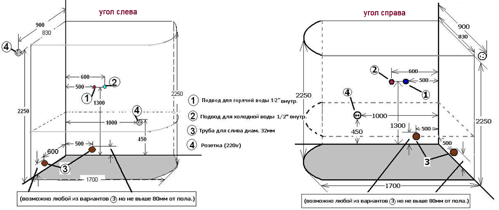 Wasser- und Abflussstellen für verschiedene Duschenmodelle befinden sich an verschiedenen Stellen. Vorher Wasserverteilung im Bad und Abwasser aus Steigleitungen ist es erforderlich, installierte Sanitäranlagen zu kaufen oder zumindest deren Dokumentation zu prüfen.
