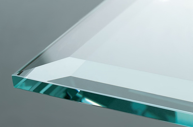 In diesem Fall wird eine spezielle abgeschrägte Kante entlang des Glasscheibenumfangs erzeugt - Abschrägung. Nach dem Polieren und als Ergebnis der Verarbeitung ist es transparent oder matt.