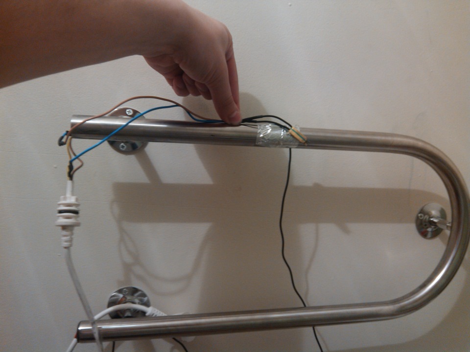 - Wenn wenn nicht angeschlossen beheizter Handtuchhalter Beide getrennten Maschinen lassen sich leicht einschalten und lassen sich nicht ausschalten. Probleme sollten im Gerät selbst gesucht werden. Wenn einer von ihnen das Schutzsystem unmittelbar nach dem Einschalten ausschaltet, liegt das Problem in der Verbindung.