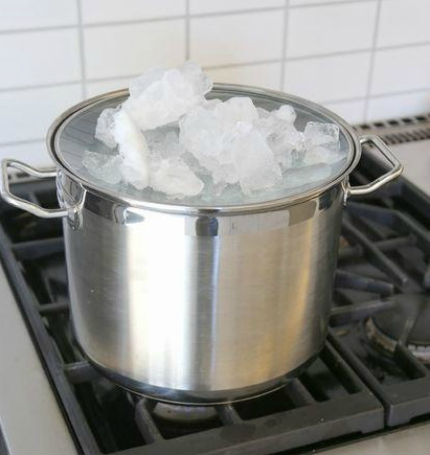 Nach dem Kochen muss destilliertes Wasser abgekühlt und gefroren werden. Ein Teil der Flüssigkeit, der nicht gefriert, muss vor dem Gebrauch abgelassen werden.