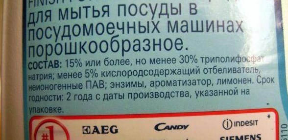 Die gesamte Chemie zum Waschen besteht aus mehreren Wirkstoffen, die dazu beitragen, die Oberfläche von Produkten bei hohen und niedrigen Temperaturen ideal zu reinigen. Das Pulver für das Gerät muss je nach Material des Geschirrs ausgewählt werden.