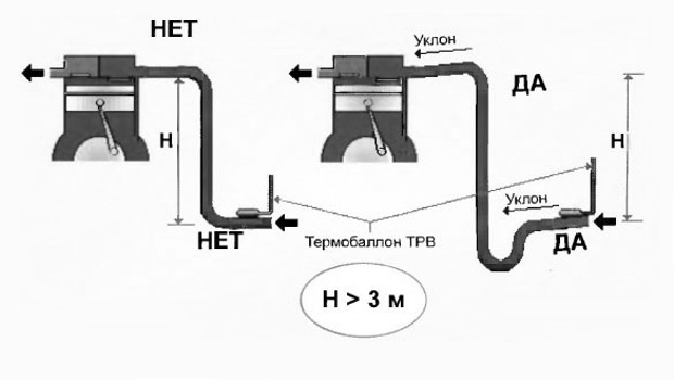 Beispielsweise sollte bei einem Rohr mit einem Durchmesser von ¼ Zoll die maximale Länge des Ölhubschleifenabschnitts 50 mm nicht überschreiten. Am unteren Rand der aufsteigenden Pipeline wird eine Schleife erstellt.