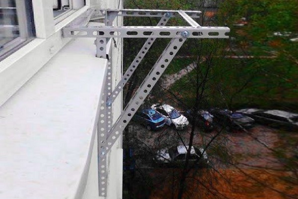 Da es nicht möglich ist, die Klimaanlage vollständig auf der Fensterbank des Kunststofffensters zu installieren, werden für den äußeren Teil verschiedene Stützstrukturen konstruiert. Ihre Aufgabe ist es, die Ladung zu erhalten, wenn auch nicht schwer, aber immer noch mit ziemlich schwerem Gewicht ausgestattet.