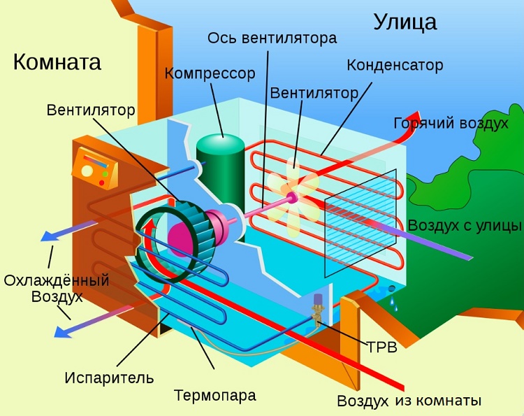 Wir stellen jedoch sofort fest, dass durch die Platzierung beider Funktionskomponenten in einem Gebäude nicht die Notwendigkeit beseitigt wird, einen Teil des Systems auf der Straße zu installieren, damit die Geräte frei Luft von der Straße aufnehmen können, um den behandelten Raum zu verarbeiten und Kälte (oder Wärme (abhängig von der Jahreszeit) zuzuführen.