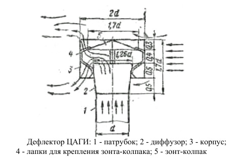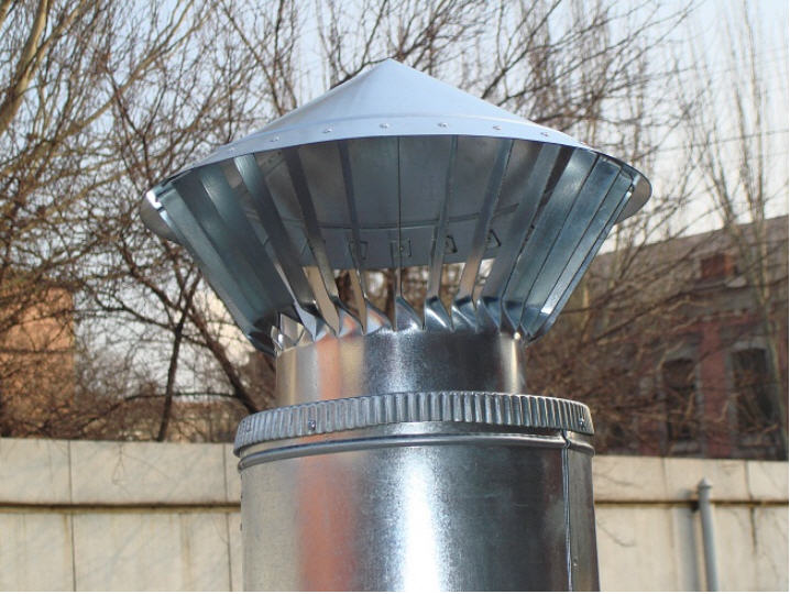 Trotz der aufgeführten Nachteile muss die Lüftungshaube am Auspuffrohr angebracht werden. Das Modell des Deflektors wird ausgewählt und konzentriert sich auf die Standardwindlast in der Region.