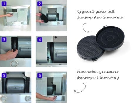 Sie sollten klären, welche Haube Sie haben, das Material listet Modelle mit verschiedenen Filtern auf. Wenn wir über Kohle sprechen, dann arbeiten sie gemäß den Anweisungen nur 3 Monate lang.