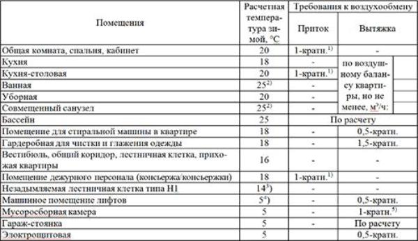 Laut SNiP sollte das Luftvolumen in Häusern und Wohnungen mindestens 3 m betragen3/ Stunde bei 1 m2 Lebensraum, während die Anzahl der lebenden Menschen nicht berücksichtigt wird.