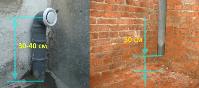 Wenn externe Ausgänge in Bodennähe platziert werden, muss die Schneehöhe überwacht werden, da die Bildung einer Schneeverwehung über der Rohrhöhe dazu führen kann, dass die Belüftung stoppt. Feuchte Luft, die den Raum verlässt, führt dazu, dass sich im Schornstein eine Mündung bildet, die die Geschwindigkeit der Luftbewegung verringern oder sogar dazu führen kann, dass die Belüftung stoppt.