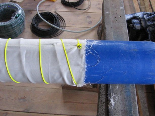 - Wir legen ein Netz auf den Draht und wickeln den Rohrkörper damit ein und befestigen ihn.