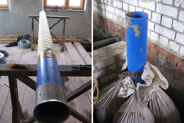 - Heben Sie das Rohr an und installieren Sie es vertikal. Befreien Sie den inneren Hohlraum des Filters vorsichtig von Spänen, die darin verbleiben könnten, und schließen Sie die Löcher.