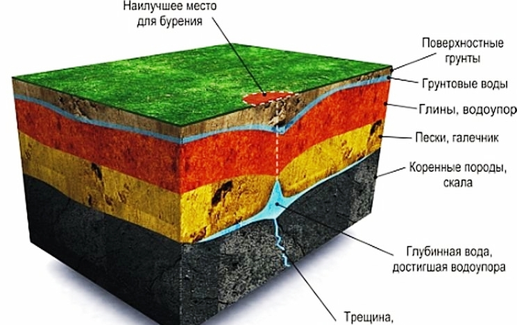 Achten Sie auch auf die Erleichterung. Es wurde beobachtet, dass Wasserträger fast horizontal auftreten. Daher ist im Bereich von Depressionen die Wahrscheinlichkeit des Auftretens von Wasser immer höher.