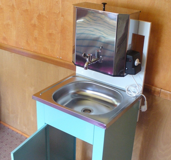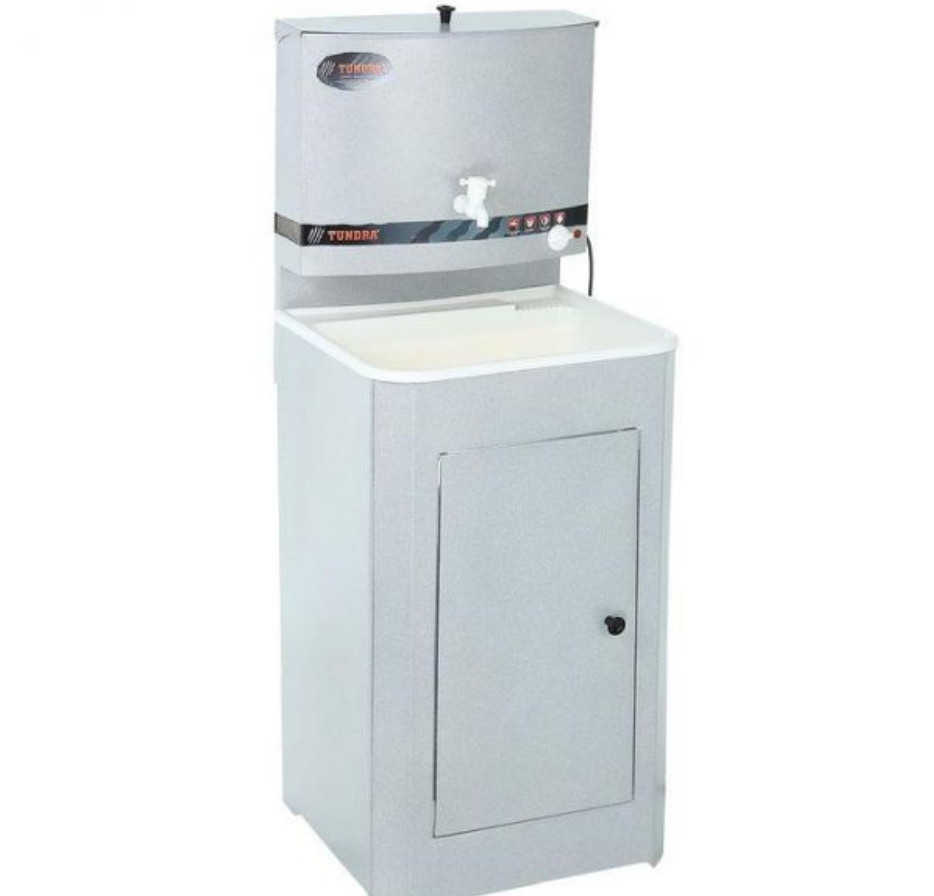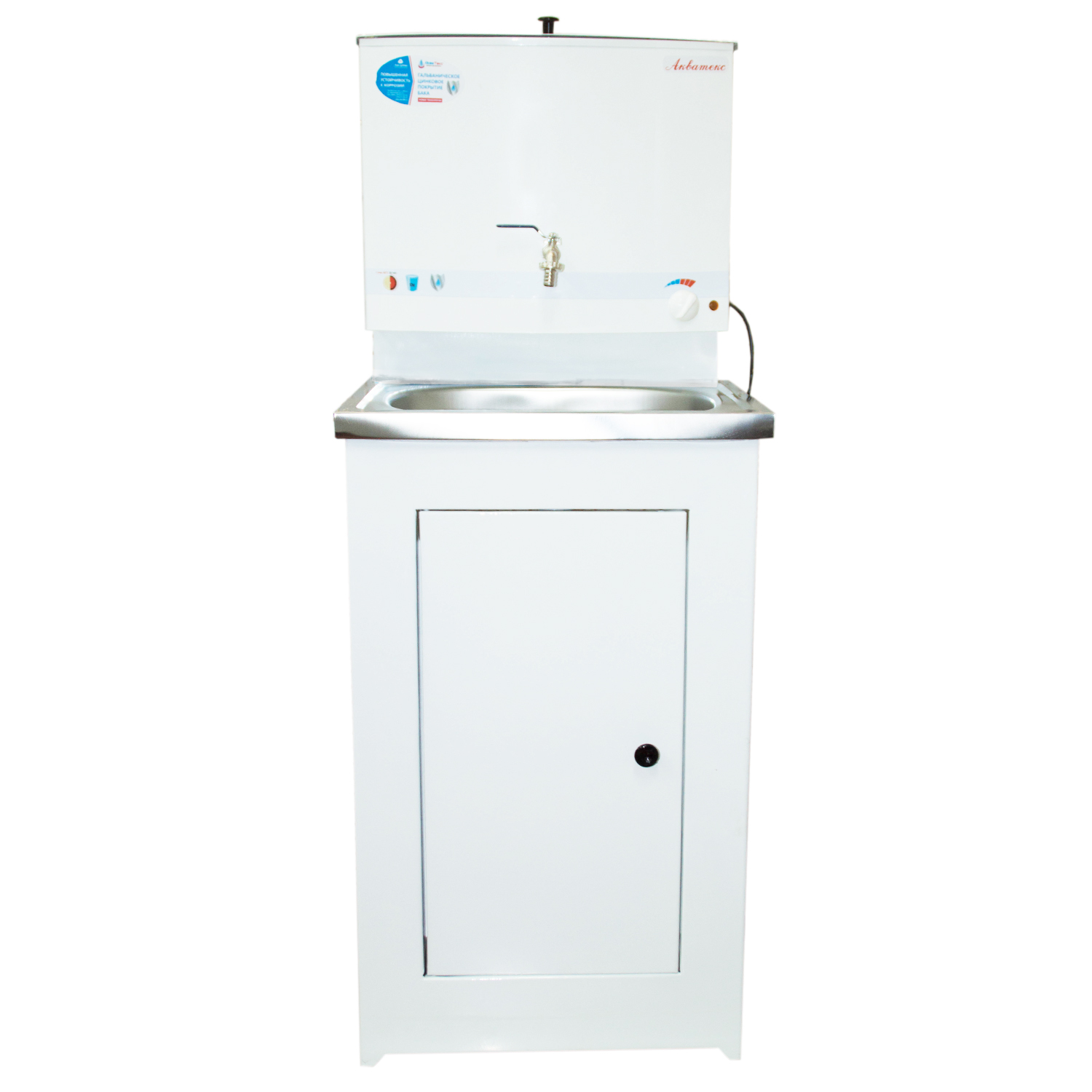 Das beheizte Waschbecken Moydodyr ist bekannt für seine Geräumigkeit und Arbeitseigenschaften. Er erwärmt schnell die richtige Menge Wasser und hält es auf der vom Eigentümer eingestellten Temperatur. Ein Eimer für gebrauchte Flüssigkeit befindet sich bequem im Schrank.