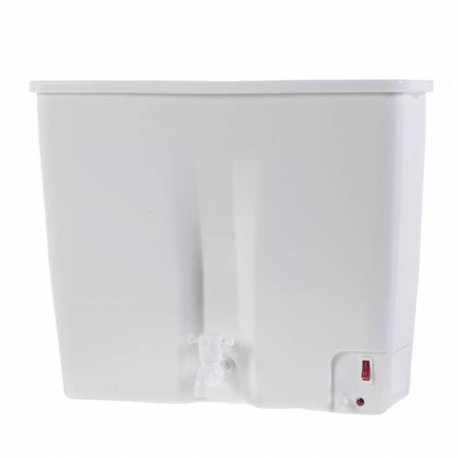 Wir setzen uns auf dem Land einen Heiztank Aquatex ein. Da wir einen Schrank mit Spüle hatten, haben wir diese Heizung daran befestigt. Es sieht sehr anständig aus, außerdem ein Edelstahltank. Es fasst 27 Liter Wasser, das ist im Land völlig ausreichend. Die Wassertemperatur kann mit einem Thermostat geregelt und auf den gewünschten Wert eingestellt werden. Es ist sehr praktisch und wir sind immer mit heißem Wasser auf dem Land.