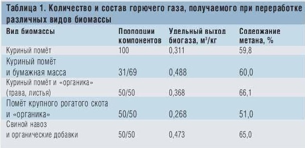 Le temps de traitement des matières premières dans les usines du premier type dépend de la composition du mélange et varie de 12 à 30 jours. Dans le même temps, 1 litre de surface utile du réacteur donne 2 litres de biocarburant. Lorsque vous utilisez des installations du deuxième type, le temps de production du produit final est réduit à trois jours et la quantité de biogaz augmente à 4,5 litres.